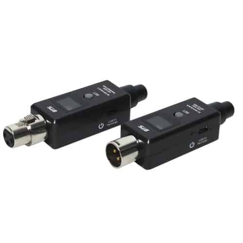 * המשדר מתחבר ב-XLR (נקבה) אל המיקרופון והמקלט מתחבר ב-XLR (זכר) אל הרמקול או המיקסר.